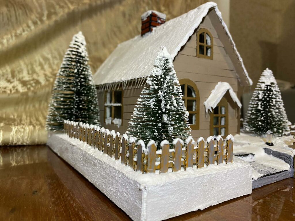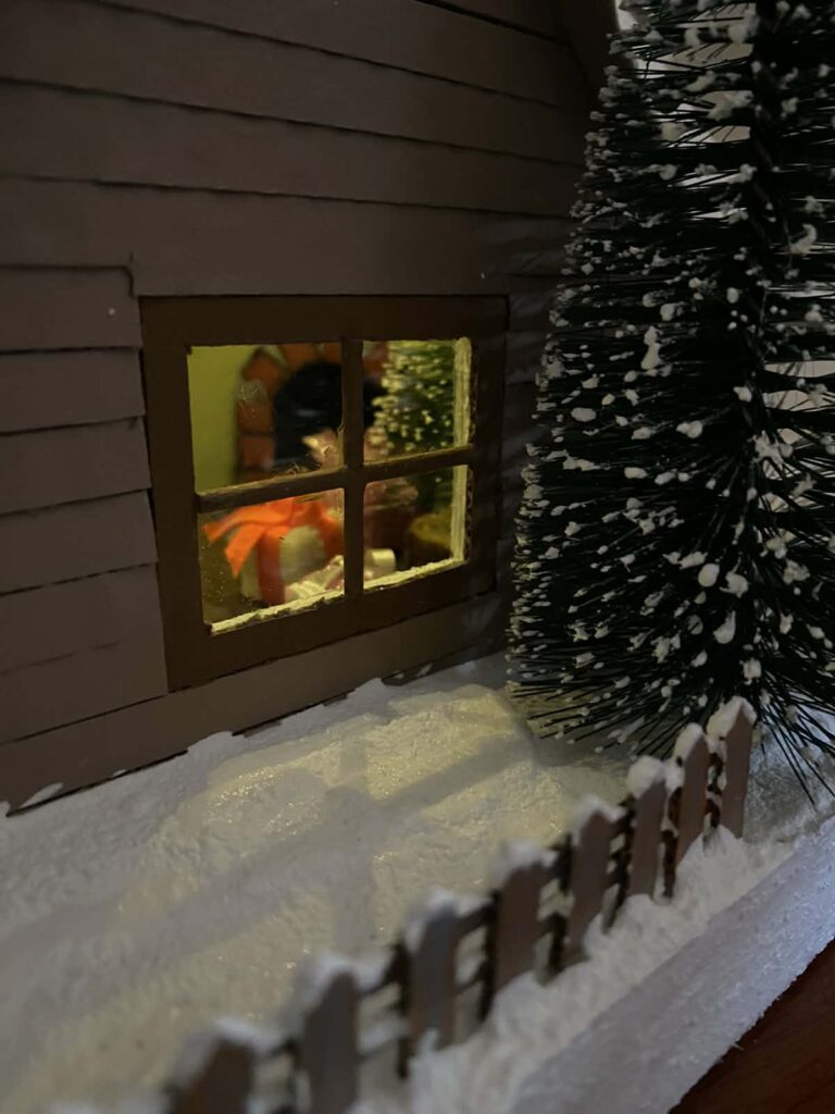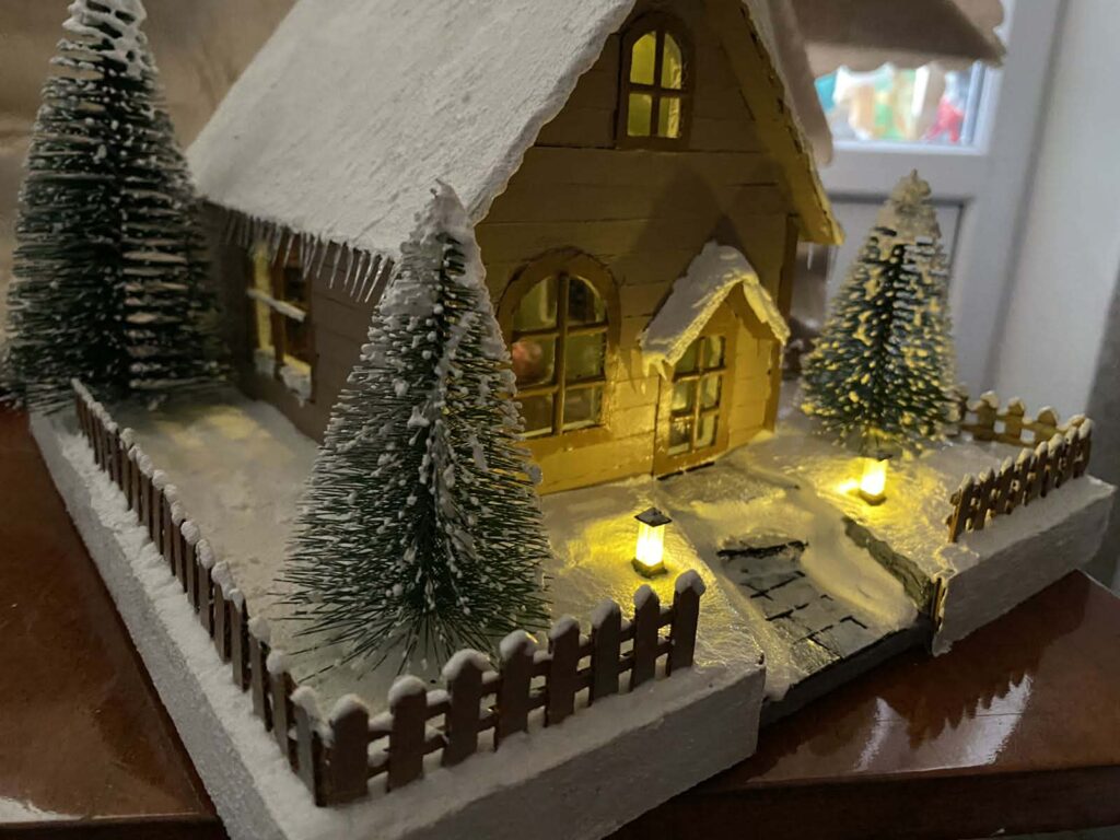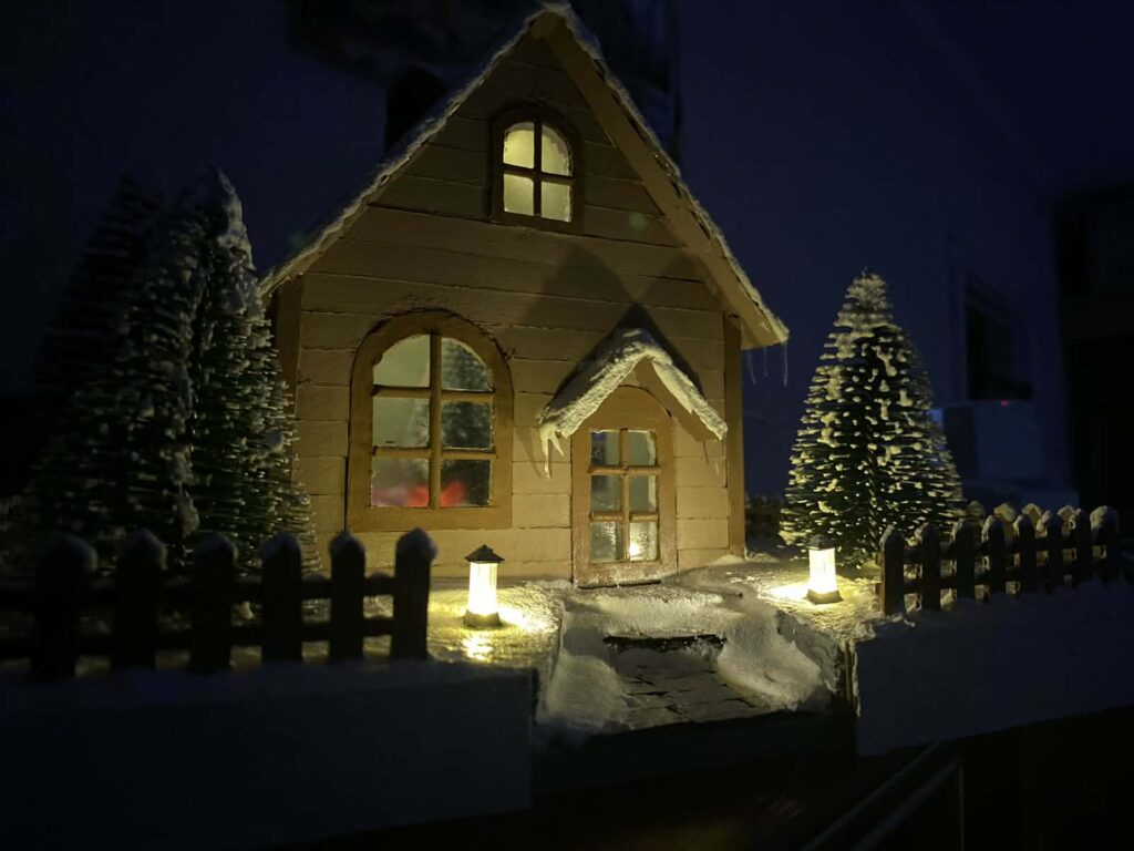 Воно іноді так буває, що хочеться щось помайструвати. Я в інтернет заглядаю, дивлюся, що люди виставляють, якщо подобається, думаю й собі подібне зробити. Ось я сидів, думав, що напередодні зими хочу щось зимове зробити. Так і виник Зимовий будиночок. Він теж дуже гарним вийшов. Там підсвічування є, реалістичний сніг, бурульки. І в самому будиночку ялинка стоїть, іграшки, камін. Мені аж самому подобається як в мене вийшло.