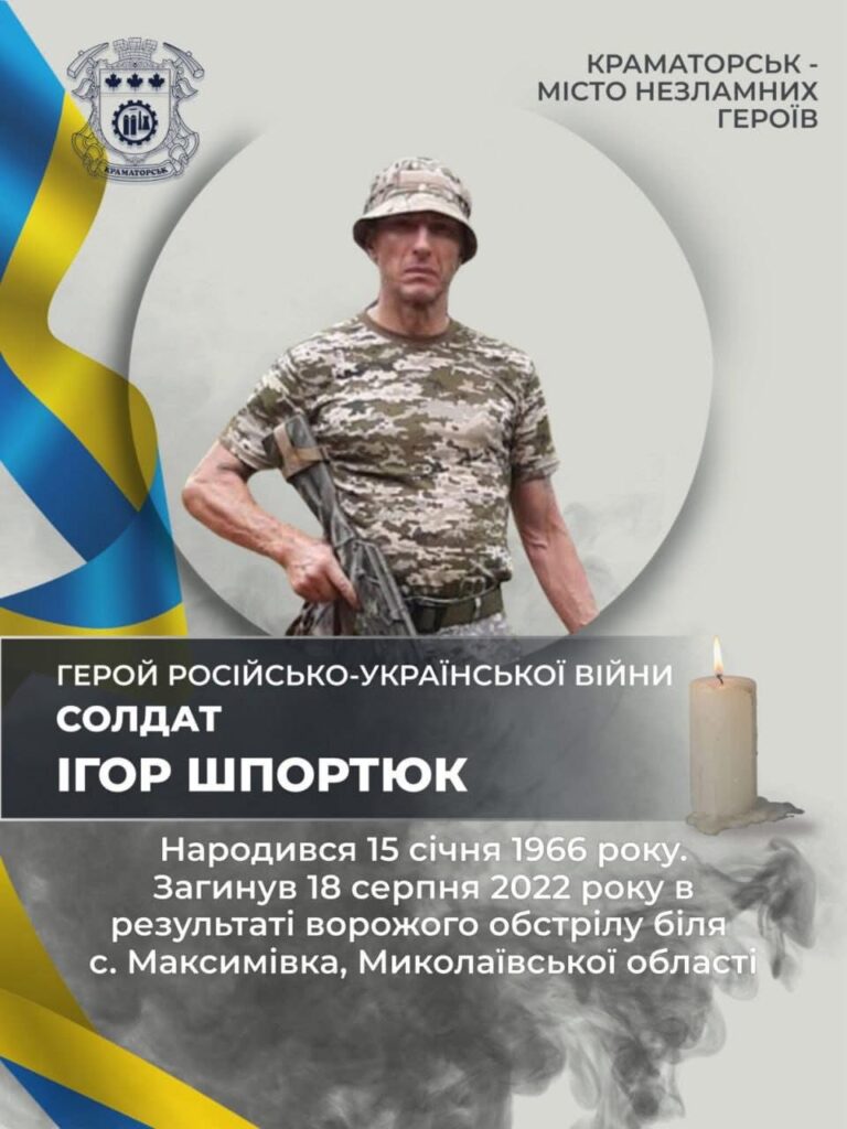 Три роки тому, 18 серпня 2022 року загинув Захисник України Шпортюк Ігор Іванович.