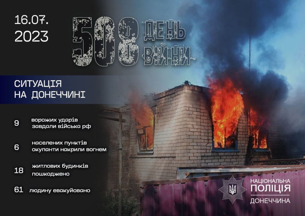 Протягом 15 липня російські війська обстріляли шість населених пунктів Донеччини. Вони гатили з ЗРК “С-300”, РСЗВ “Град”, артилерії, а на Нью-Йорк вони скинули авіабомбу ФАБ-250.