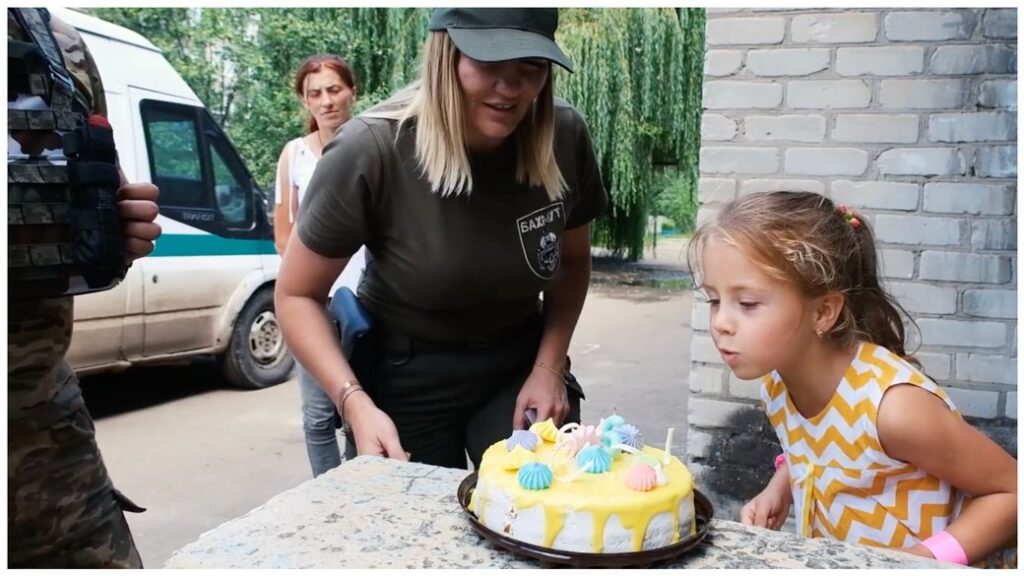З прифронтових Залізного та Північного Бахмутського району поліцейські евакували дві родини з дітьми. Після евакуації дівчинки з Залізного поліцейські загону “Білі янголи” подарували їй торт до дня народження, яке 6-річна дитина не могла відсвяткувати через обстріли.