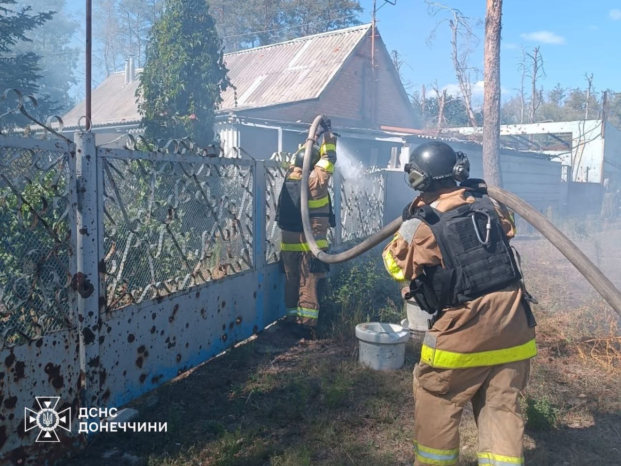 Лиман: Учора вдень ворог завдав нищівного удару по приватному сектору міста. Внаслідок обстрілу сталося загоряння житлового будинку. Вогнеборці ліквідували пожежу на площі 90 кв. м. Також надзвичайники залучалися до ліквідації займання житлового будинку та лісової підстилки, однак через повторний обстріл змушені були припинити роботи та повернутися до підрозділу.