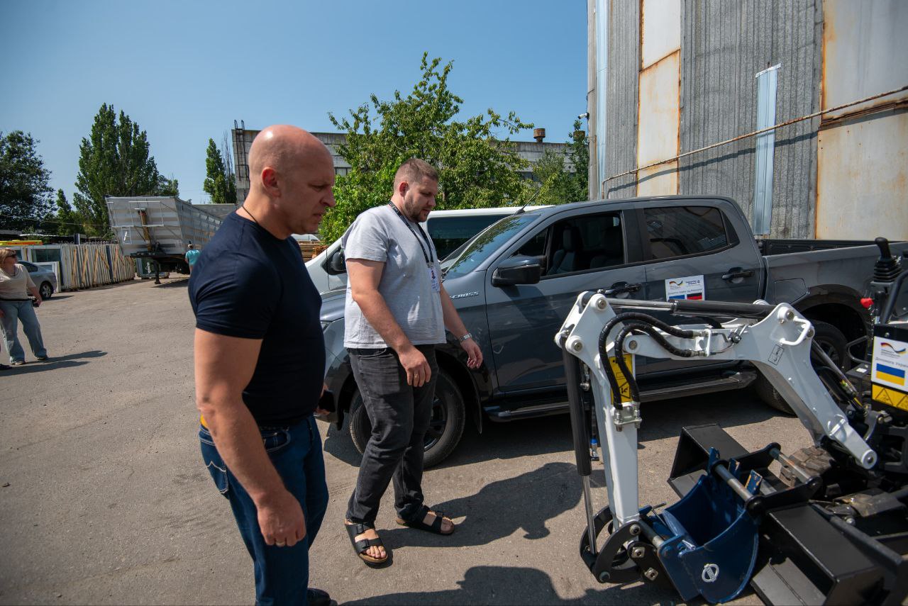 2 мініекскаватори з комплектуючими, позашляховик, мікроавтобус, 2 мобільні освітлювальні вежі та майже 6 тисяч захисних окулярів уже вирушають до прифронтових громад і обласних комунальних підприємств — туди, де все це необхідне просто зараз.