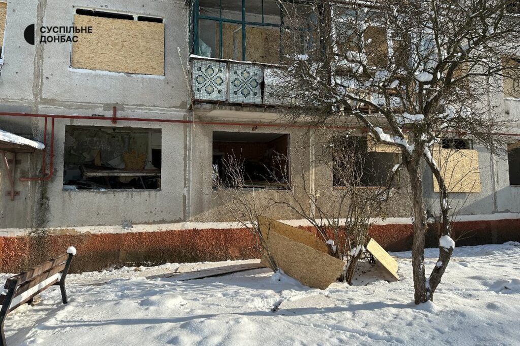 Від вибухової хвилі пошкоджена одна з п’ятиповерхівок, де після атаки 6 січня немає опалення. Тоді війська РФ зруйнували котельню ударом бомби.