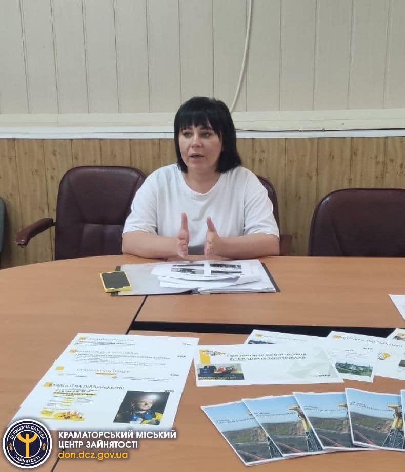 18 серпня заступник начальника відділу взаємодії з роботодавцями Ірина Паровишник разом із фахівцем групи з підбору персоналу ТДВ ДТЕК шахта Білозерська Катериною Дмитрохіною провели мініярмарок вакансій для пошукачів роботи Краматорського району.