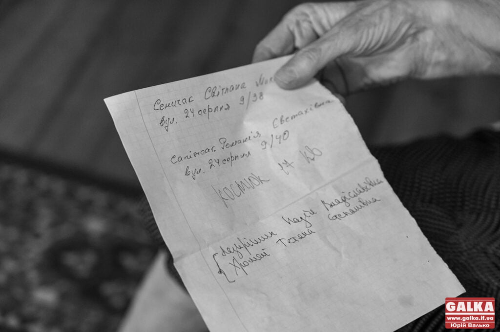 «Моя донька шість років провчилася в інституті в Харкові. Мала однокурсницю з Івано-Франківська. Коли в Краматорську почали стріляти, вона подзвонила нам, сказала їхати в Івано-Франківськ і що можна жити в її квартирі. Нам багато куди пропонували виїжджати: і в Київ, і в Харків, і за кордон. Але Олена вирішила, що ми поїдемо у Франківськ, до Лесі».
