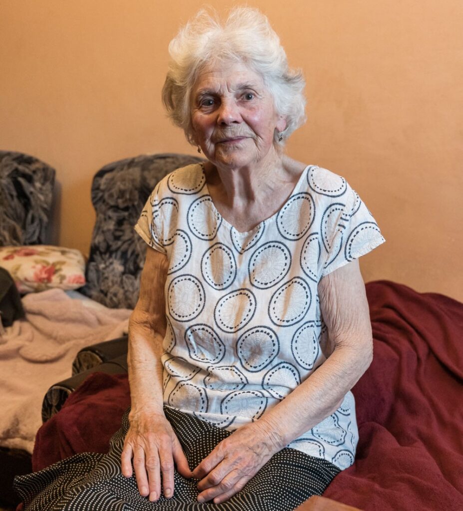 «Я просто не можу сидіти спокійно — весь час в русі. Оце в перші дні після переїзду вирішила подивитися місто, погуляти, поки донька готувала вечерю. На зупинці спитала, що звідси їде до центру. Сказали: 3 і 7 тролейбус. Я сіла в сьомий, довго їхала, аж тут чую — гудить сирена. Транспорт зупинився, нас всіх вигнали на вулицю. А я мало того, що не розумію де я, то ще й не знаю, куди мені повертатися. Я адресу поки не уточнювала, телефон з собою не взяла. Стояла там, змучилася, вже аж сутеніти почало. Тоді до мене підійшла жінка, яка побачила, що я заблукала. Наталя її звуть, я запам’ятала. Пояснила їй, що не знаю адреси, знаю тільки, що живу біля церкви, а поряд є школа №25. Вона відійшла, кудись, подзвонила й через декілька хвилин під’їхала поліційна машина. Мене привезли під самий будинок, подзвонили доньці, щоб спустилася мені назустріч».