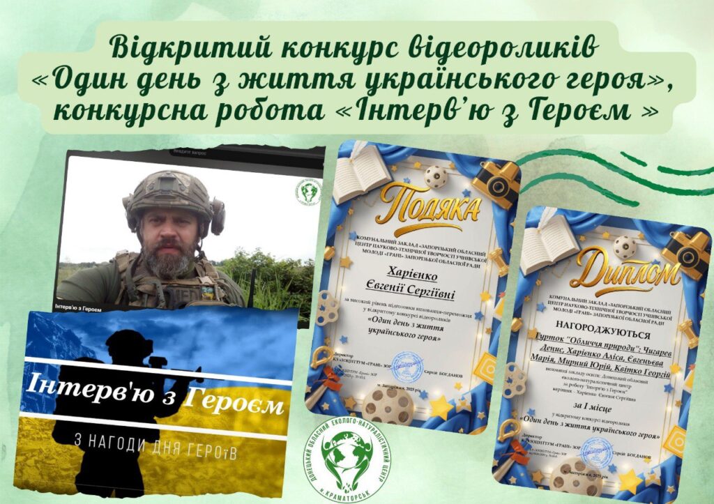 Вихованці гуртка «Обличчя природи» Донецького обласного еколого-натуралістичного центру отримали у цьому конкурсі Диплом І ступеня з відеороботою «Інтерв’ю з Героєм».