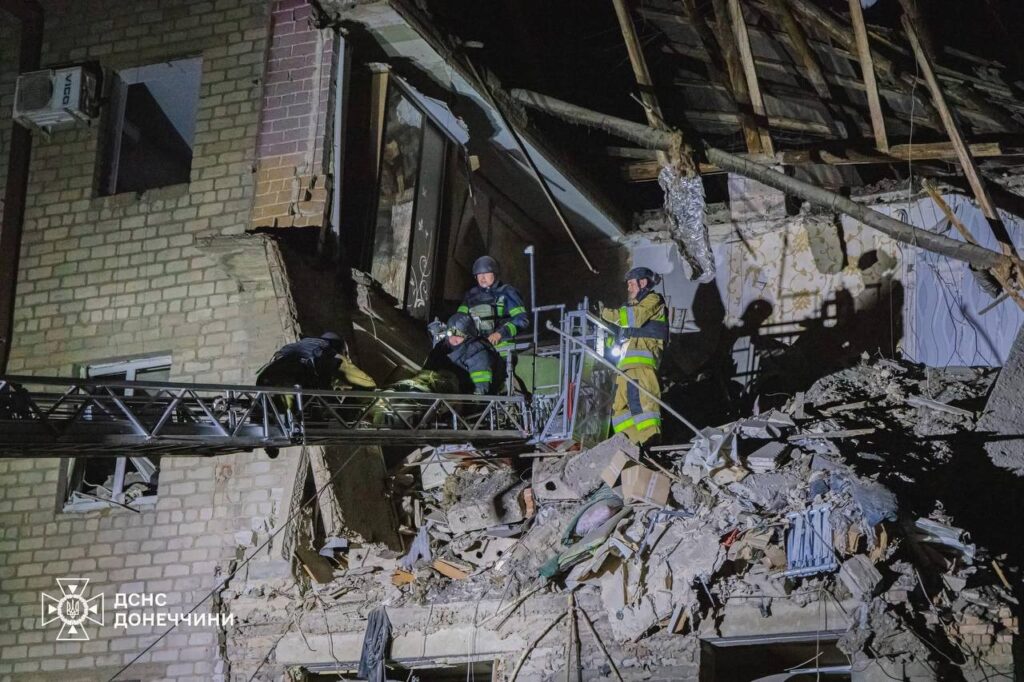 Пізно вночі 21 червня цього року росіяни вдарили КАБами по чотирьохповерховому житловому будинку. Ворожий снаряд повністю зруйнував під’їзд Олени. Те, що пережили ту ніч, пригадує жінка – це диво. Із зруйнованої квартири їх витягли рятувальники.