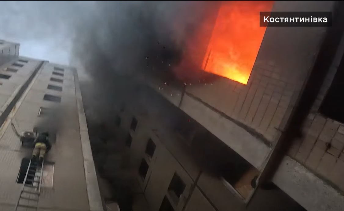 Днями ворог завдав авіаудару по житловій забудові Костянтинівки, спричинивши масштабну пожежу в одній із багатоповерхівок міста.
