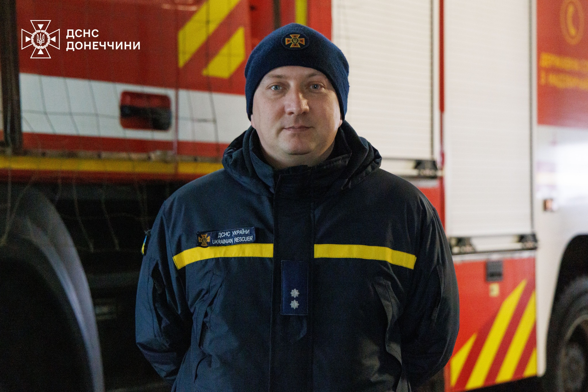 «Я став рятувальником для того, щоб у найтемніші хвилини бути поруч із тими, хто потребує допомоги. Кожне врятоване життя — це сенс моєї роботи», — каже Володимир Опанасенко, начальник караулу 38-ї державної пожежно-рятувальної частини 6-го ДПРЗ у Слов’янськ.