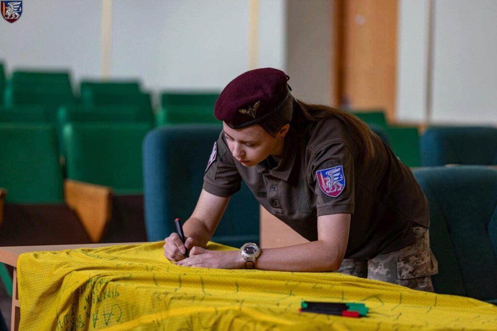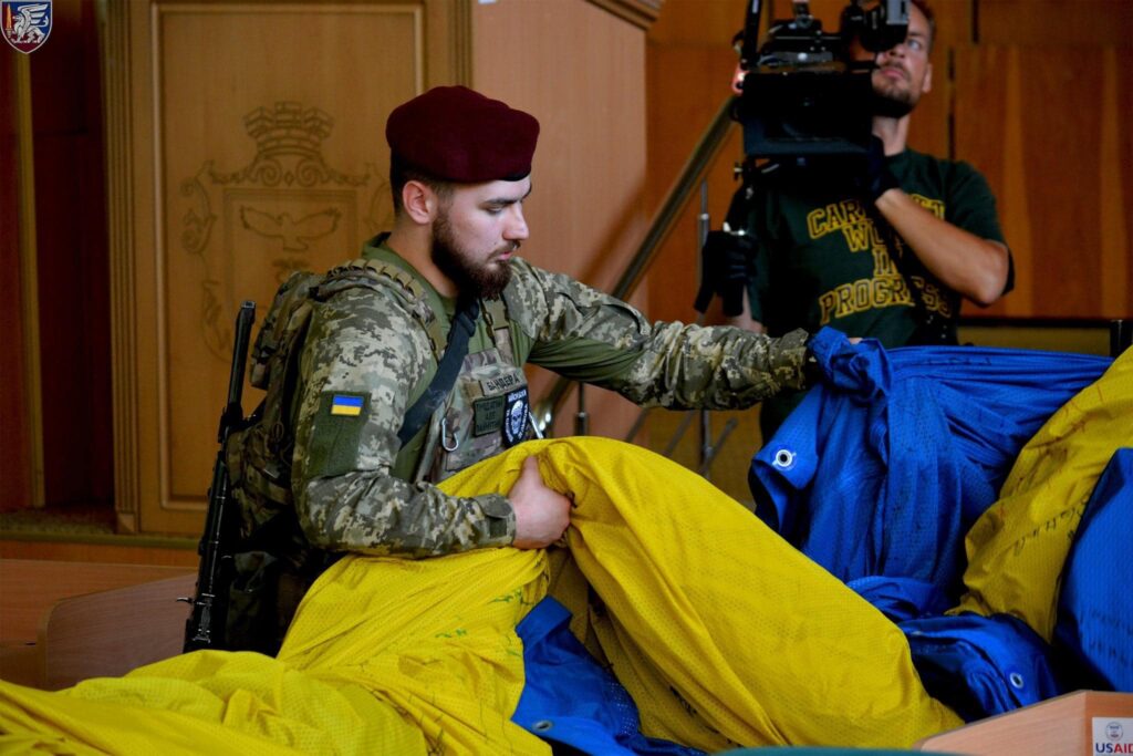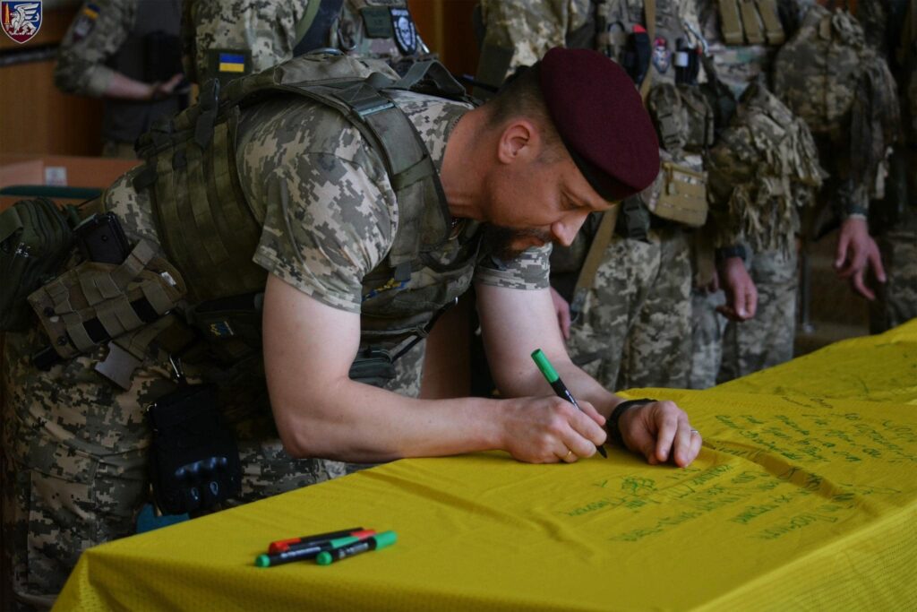 Наші десантники мали за честь написати власні побажання на стязі, який від сьогодні буде прикрашати місто Київ. Насправді, це має велике значення для кожного з нас, адже Прапор України – це символ не тільки державності, а й незламності, відваги і боротьби за свободу та незалежність”, – діляться наші захисники на офіційній сторінці бригади у Facebook.