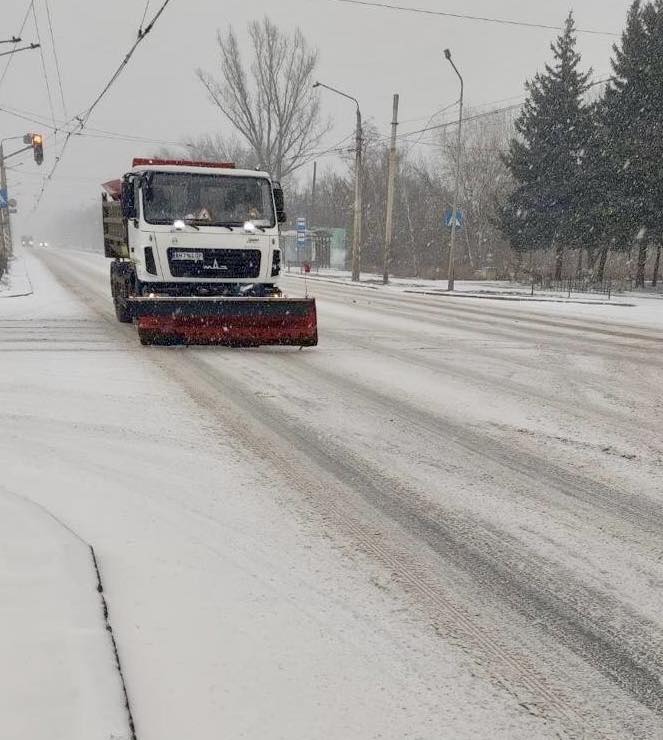 Спеціалізована техніка здійснює розчищення проїжджої частини та проводить обробку доріг піщано-сольовою сумішшю з метою запобігання утворенню ожеледиці. Роботи тривають безперервно з моменту початку снігопаду.