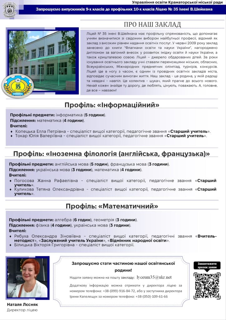 Надати заявку можна на пошту закладу: lyceum35@ukr.net