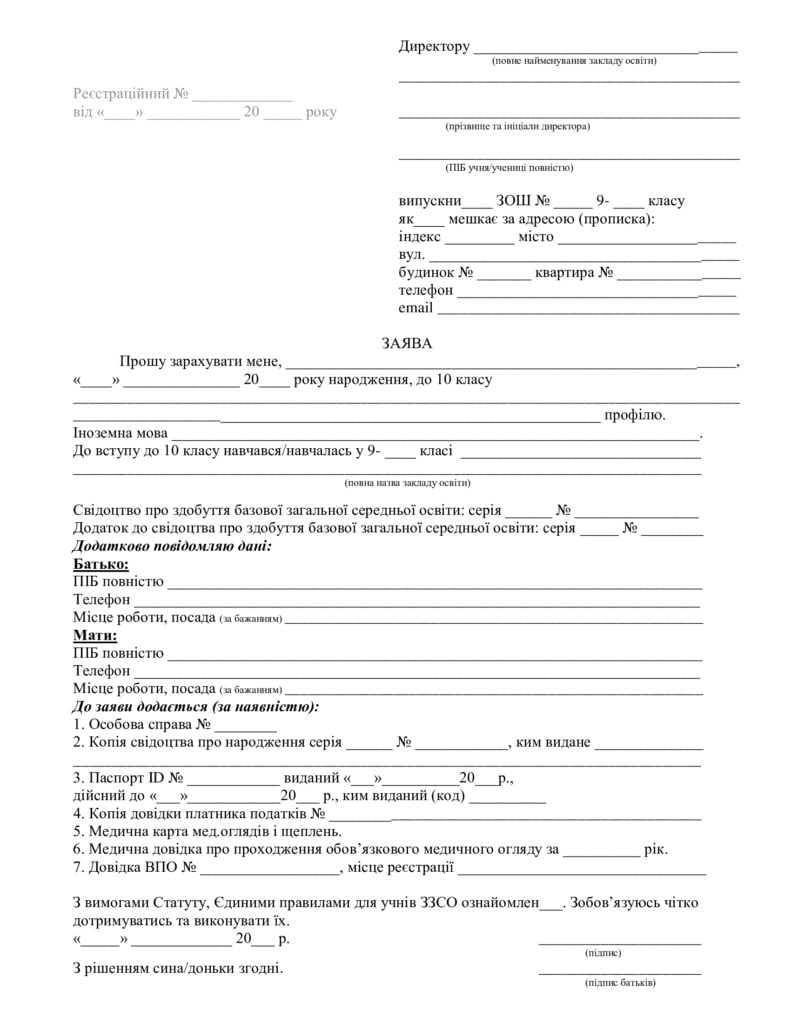 Надати заявку можна на пошту закладу: school10kram@gmail.com