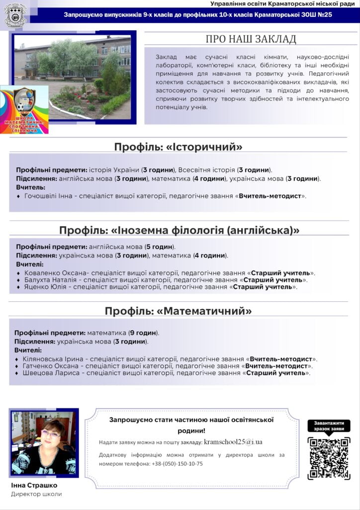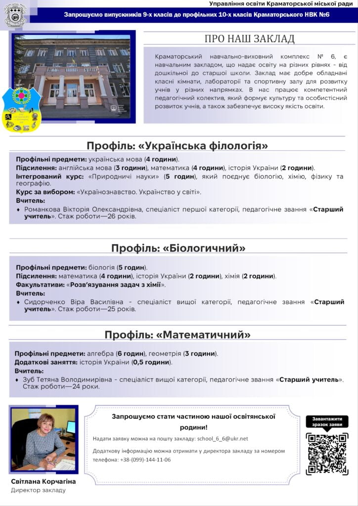 Більше актуальної інформації отримуйте на офіційній сторінці Управління освіти Краматорської міської ради.