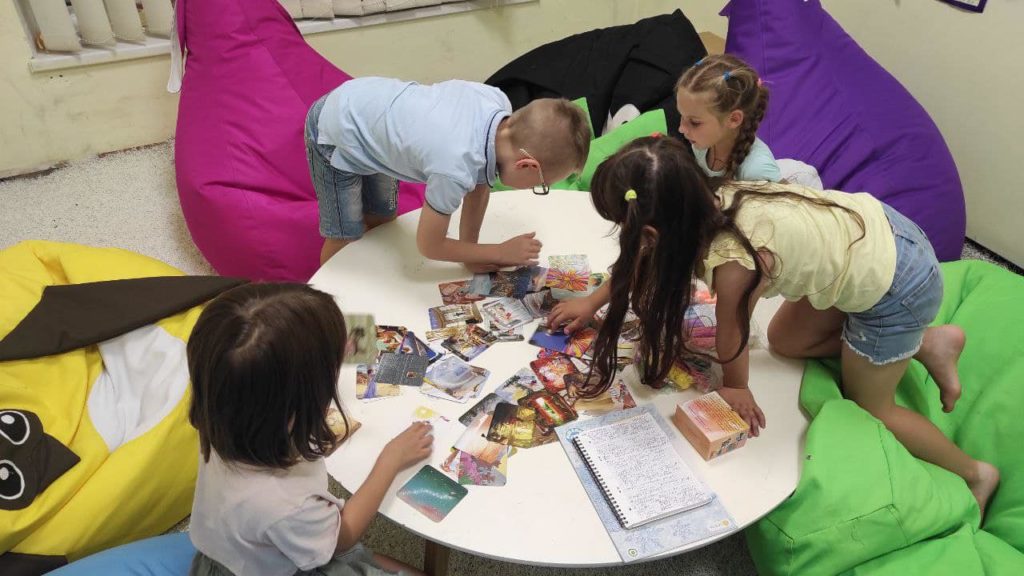 «Ми відкрили творчо-патріотичну майстерню.Тут працюють педагоги 1-3 класів. Робимо пропрацювавння з психологом – тренінг «Діти та війна». Ми його робимо 50/50 з арт-терапією чи мульти-терапією, щоб дітям було цікавіше. Для дітей заняття у формі гри. Вони вимальовують свої страхи, таким чином. Дуже добрі результати ця, скажімо так, гра показала з дітьми з деокупаційних сіл. Ми проводили в Ізюмі, Святогірську ці тренінги. Те, що нам діти вимальовували не має переживати не те, що дитина і доросла людина»,- говорить заступник директора БФ «Хатіко UA» Катерина Оніщенко.