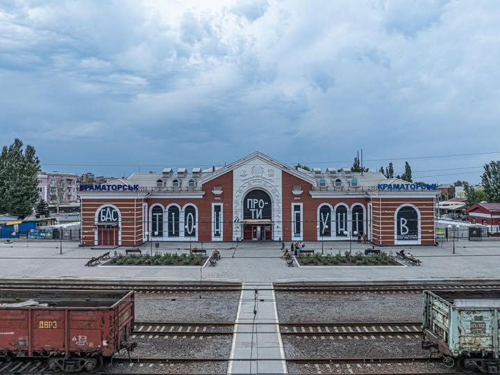 Над залізничним вокзалом Краматорська замайорів біло-чорний Прапор надії