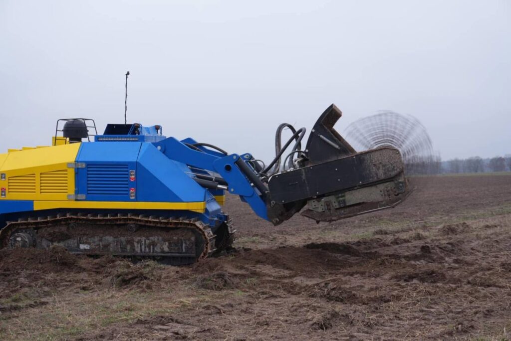 «Краматорський завод важкого верстатобудування» розробив нову машину для розмінування – Germina URCM-3000. Дана машина здатна розміновувати 5 гектарів за один день і може витримати підрив протитанкової міни.