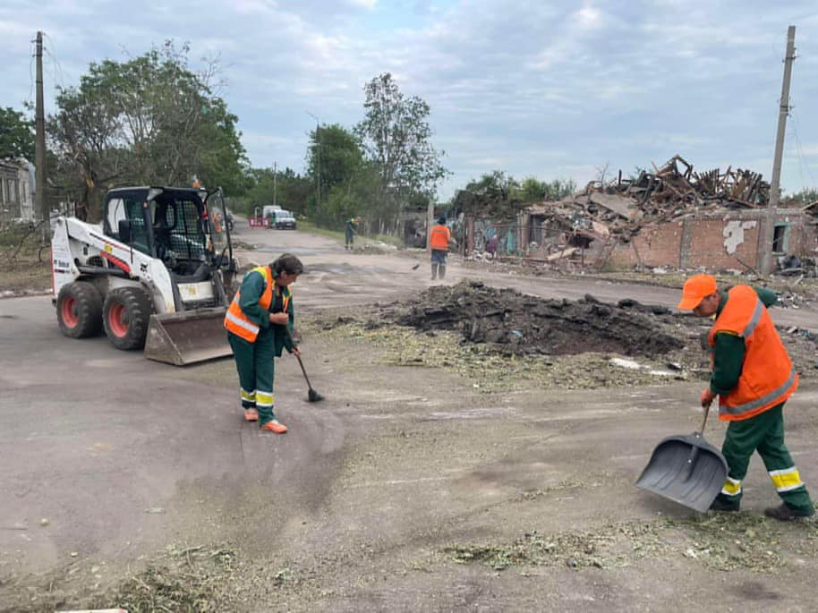 Співробітники краматорського комунального автотранспортного підприємства-052810 допомагають навести лад у місті після ударів російських ракет на Біленькій.