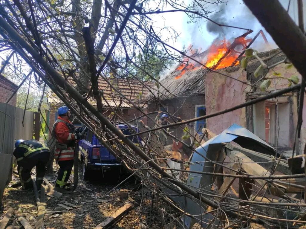 Через кілька годин зазнало обстрілів міста Торецьк. Внаслідок обстрілу виникла пожежа на території приватного домоволодіння.