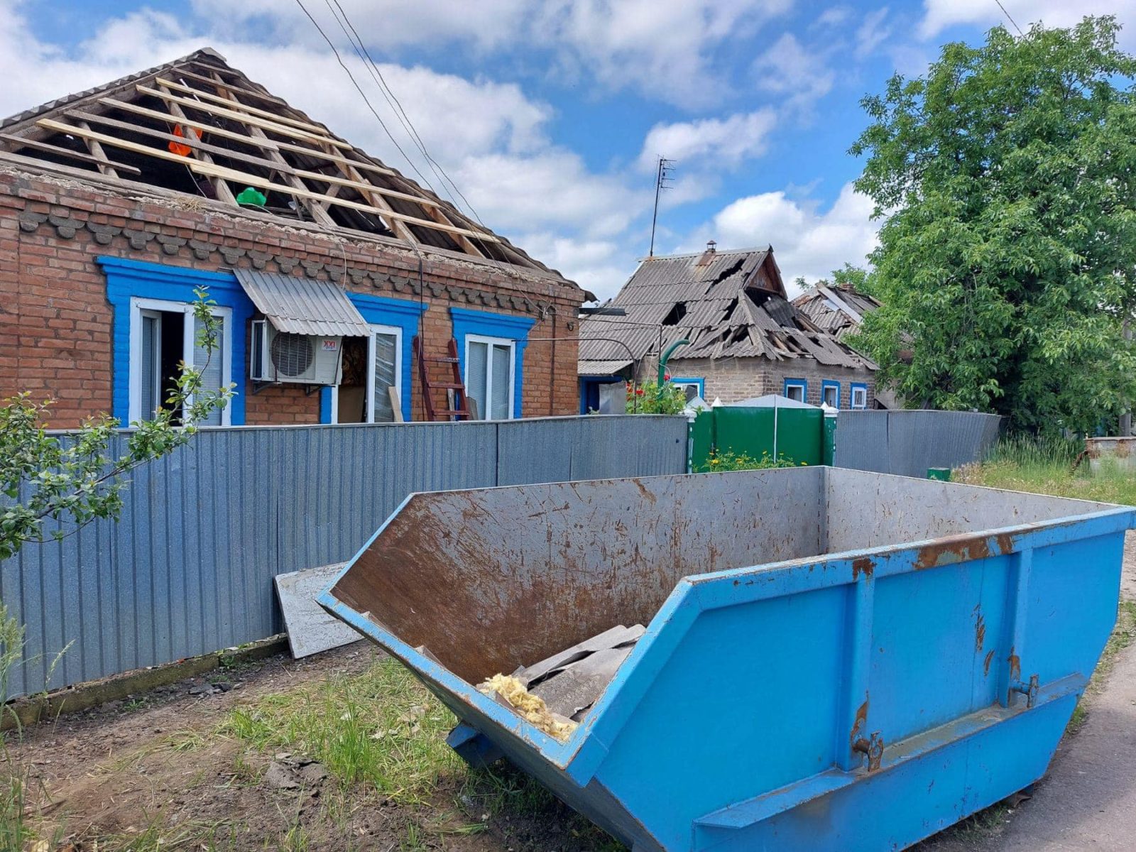 На місці вчорашнього обстрілу Ясногірки встановили контейнер для сміття