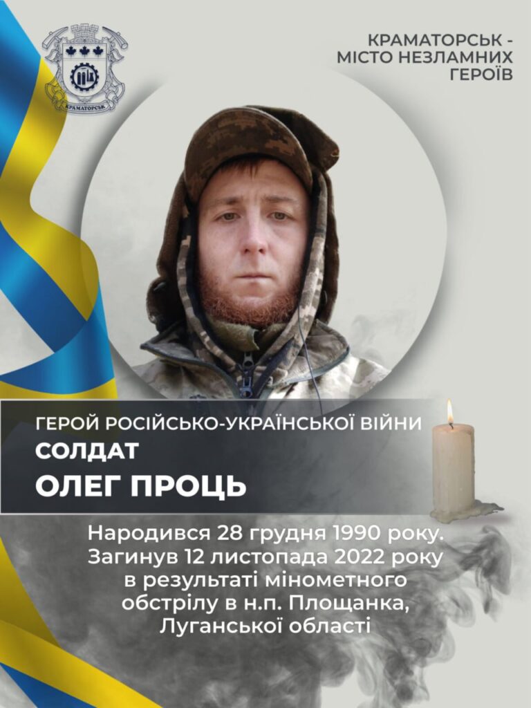 У цей день, 12 листопада 2022 року загинув Захисник України з Краматорська Проць Олег Вікторович.