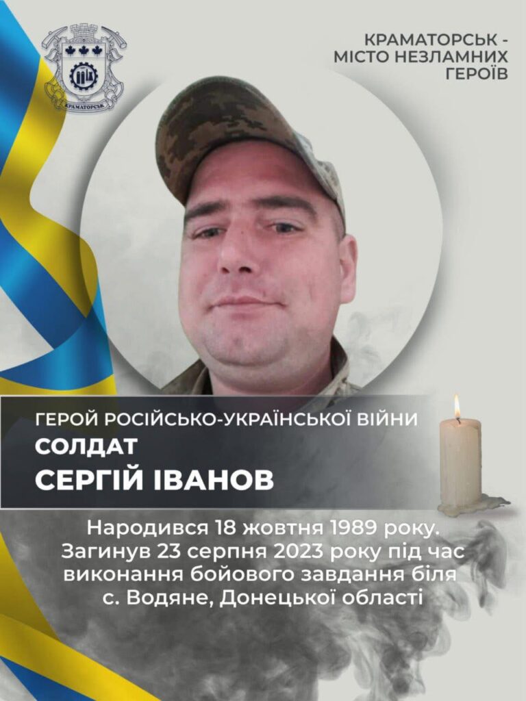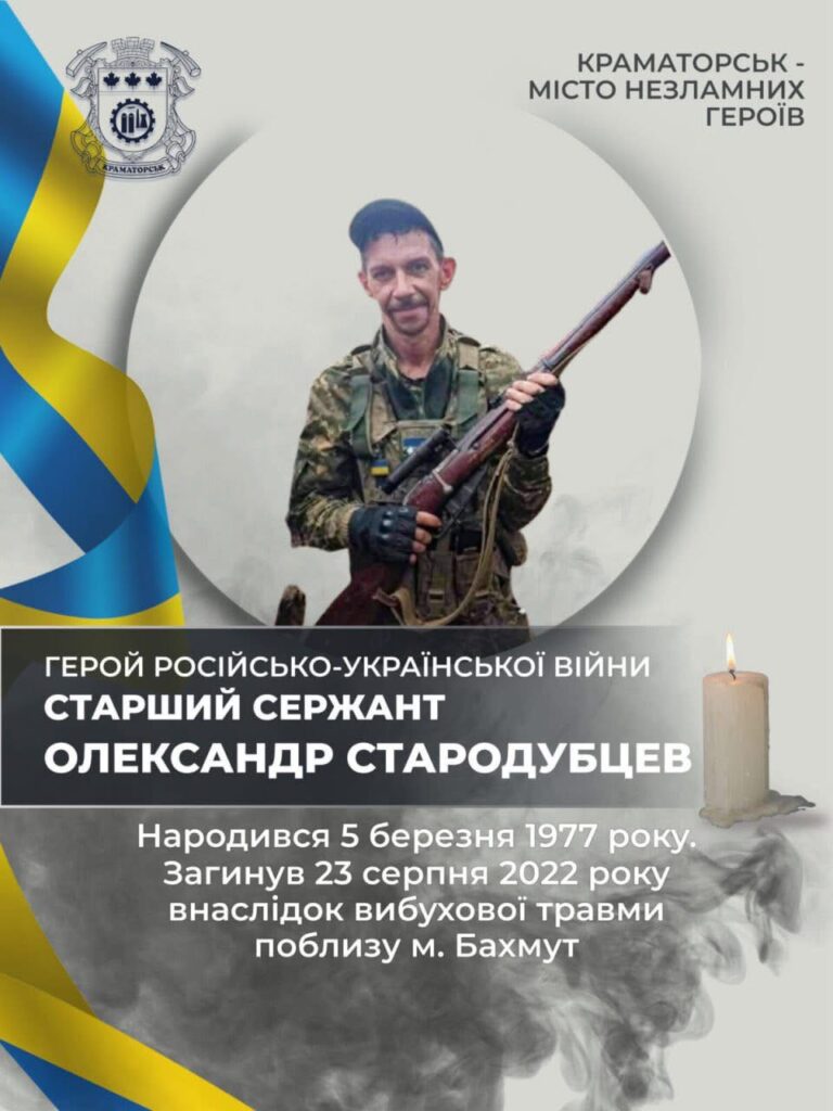 У цей день в різні роки Краматорськ втратив двох Захисників України — Стародубцева Олександра Сергійовича (23.08.2022) та Іванова Сергія Євгеновича (23.08.2023).