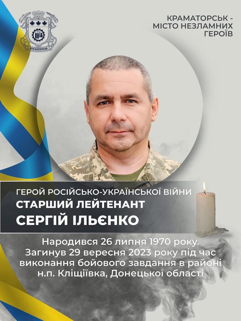 У цей день, 29 вересня 2023 року загинув Захисник України з Краматорська — Ільєнко Сергій Анатолійович.