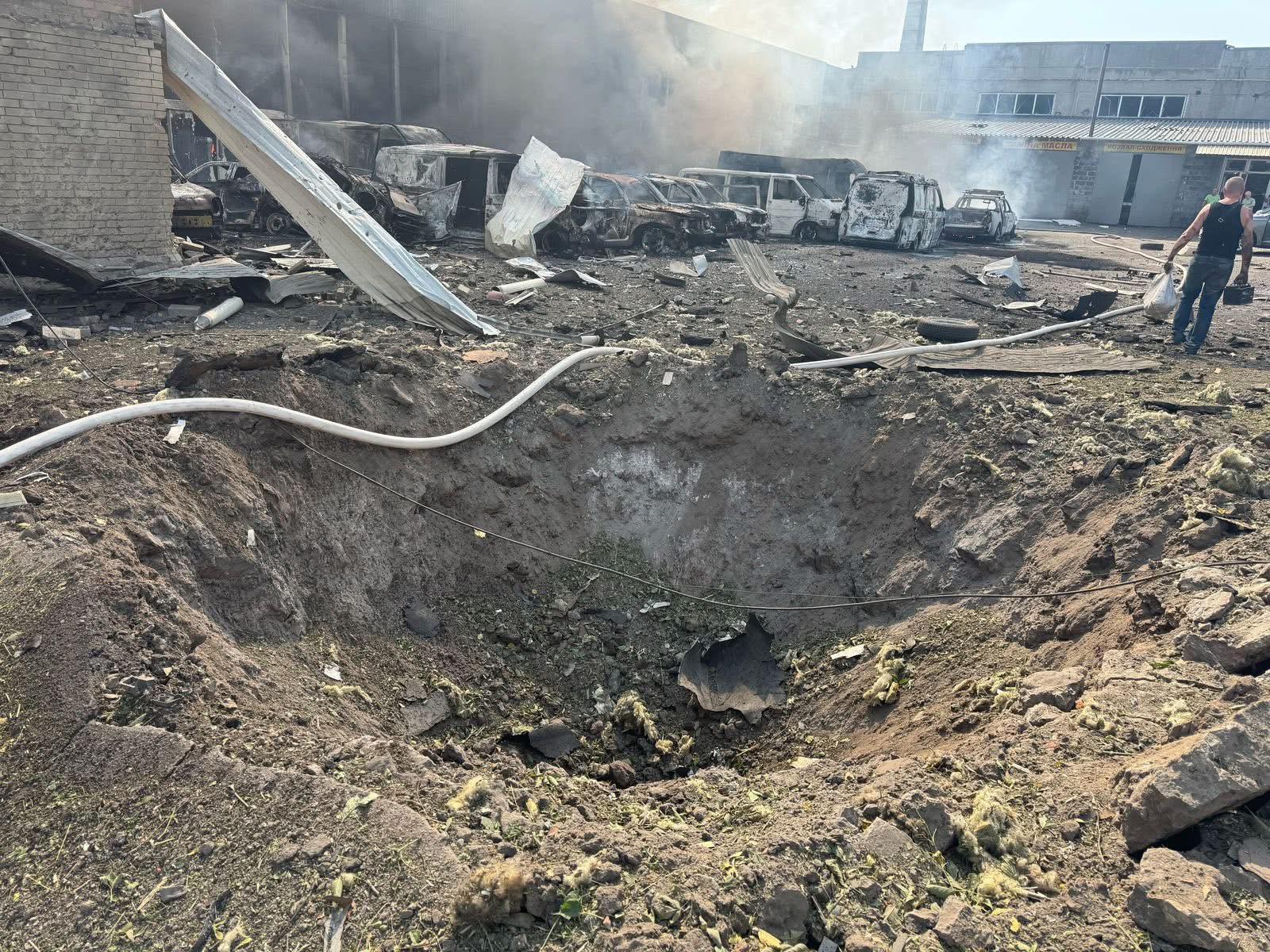 Пошкоджені торговельний комплекс, СТО, навчальний заклад та адміністративна будівля.