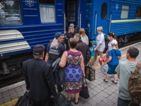 Переселенців з Донеччини зустріли на Житомирщині, які прибули черговим евакуаційним потягом