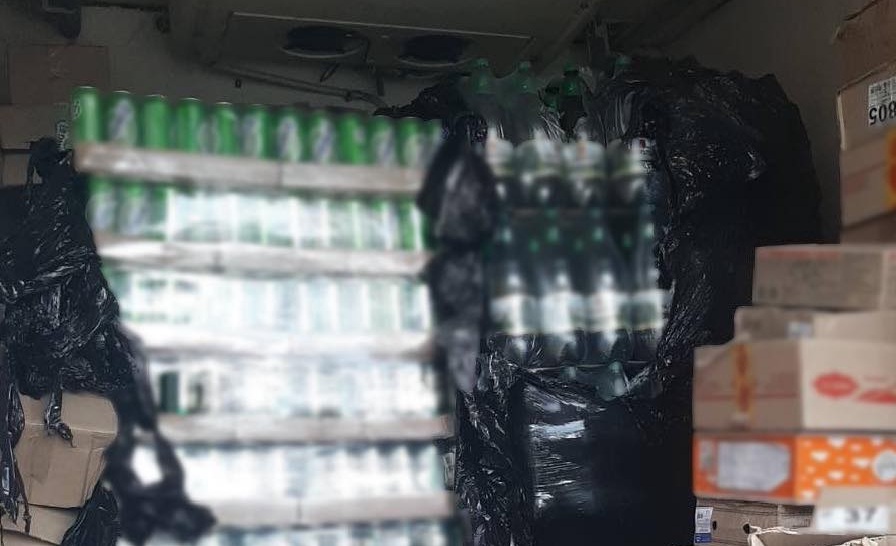Під час проведення поверхневої перевіри у вантажному відділенні транспортного засобу поліцейські виявили заборонений вантаж: коньяк, пиво об’ємом 1617 літрів.