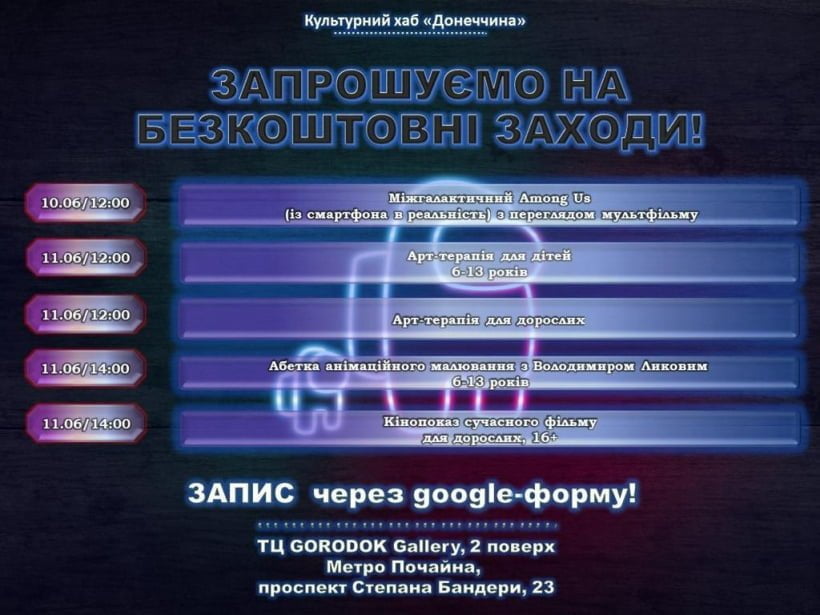 10 червня у просторі “Культурний хаб Донеччина” в Києві, пройдуть зустрічі для дітей і дорослих. Буде проведено розважальну програму: