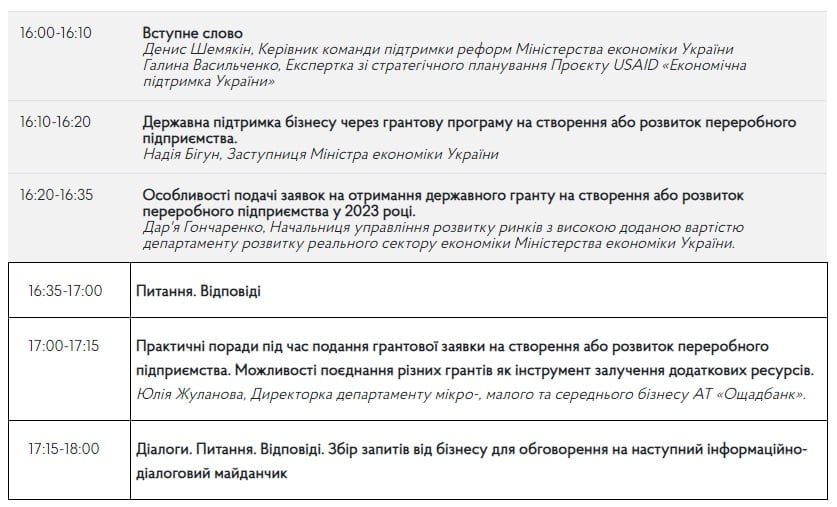 Мета заходу: Висвітлити питання пов’язані з фінансовою підтримкою бізнесу через державну грантову програму на створення або розвиток переробного підприємства.