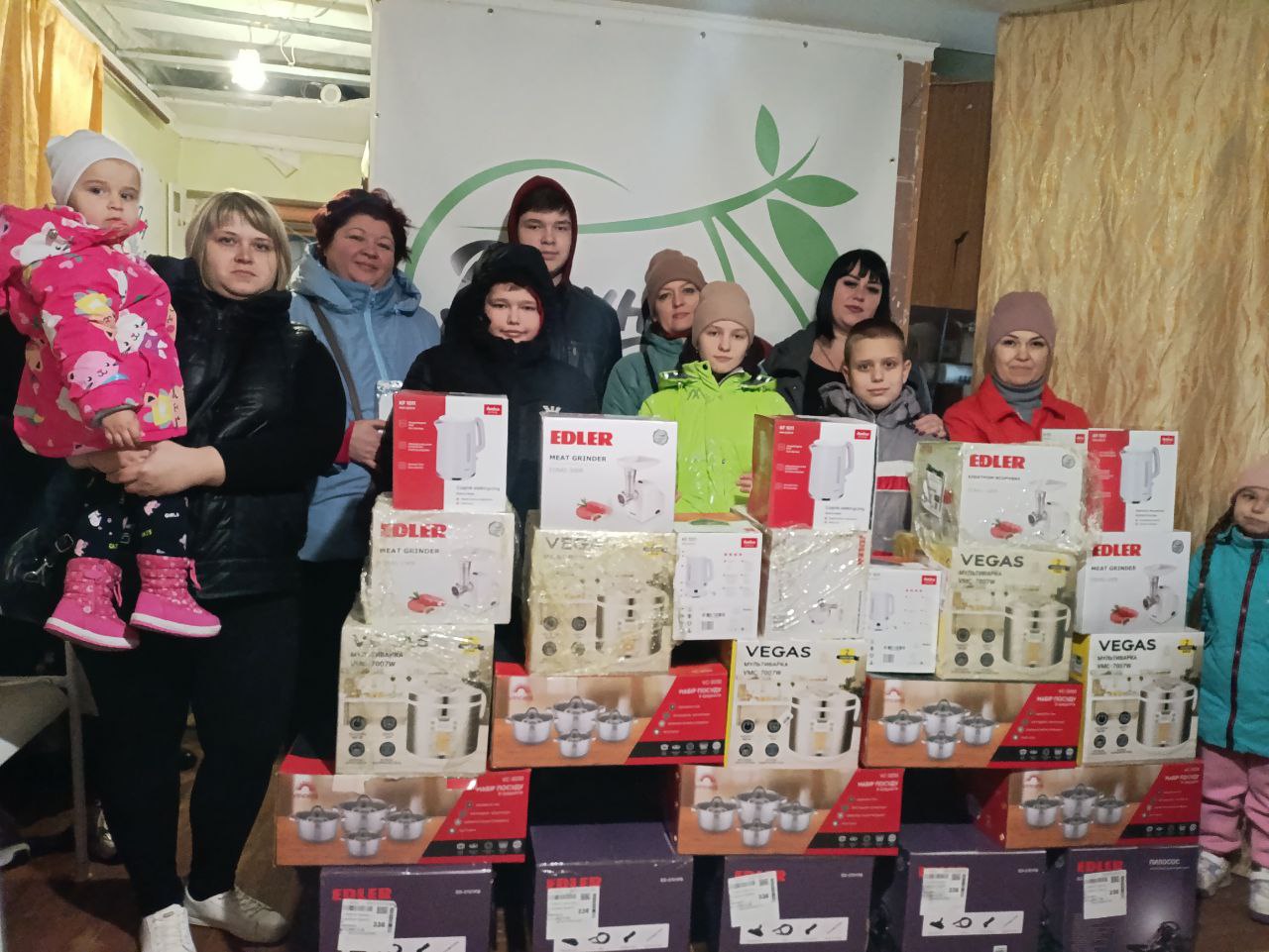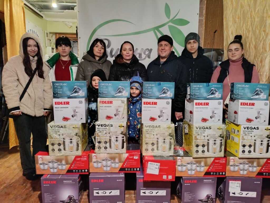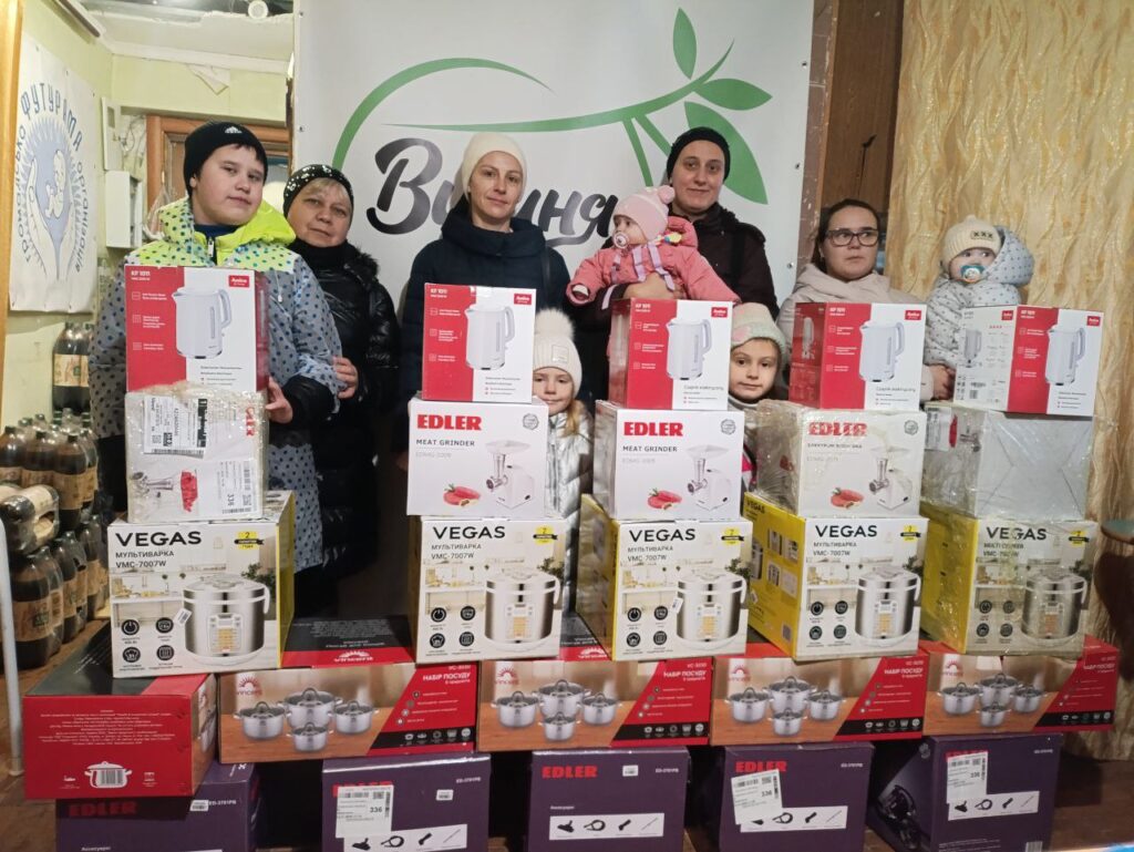 Організація «Вишня.юа» передала необхідні речі вразливим сім’ям. Набори складалися з пилососа, мультиварки, набору посуду, електричної м’ясорубки, праски та електричного чайника.