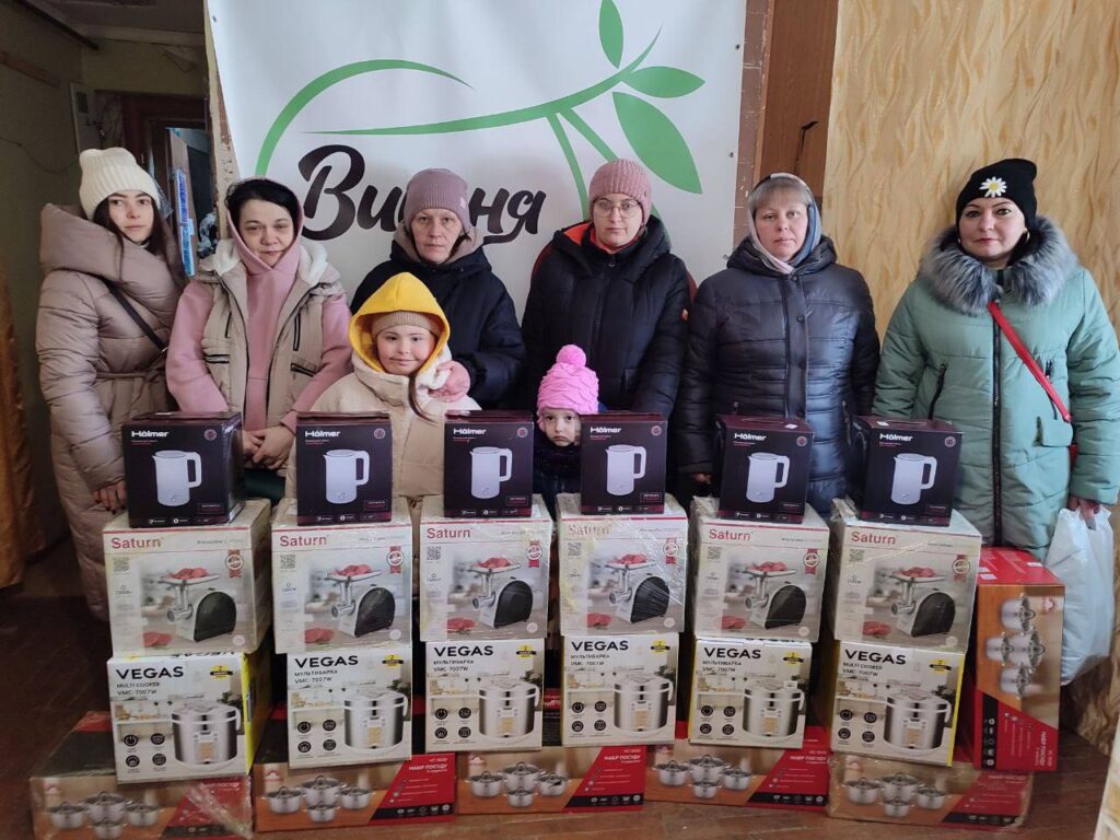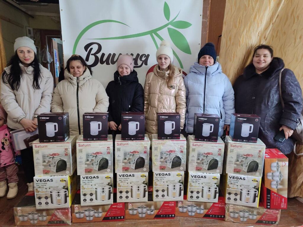 Цього разу 22 родини із числа ВПО, багатодітні сім’ї та родини, де виховується дитина з особливими потребами, отримали набори побутової техніки та речей першої необхідності. До кожного набору увійшли електром’ясорубка, мультиварка, електричний чайник та набір посуду.