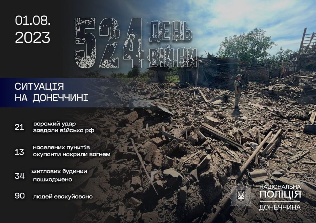 Нагадаємо, протягом 31 липня від обстрілів з боку російської армії на Донеччині загинули двоє людей у Зоряному, ще троє жителів області отримали поранення.