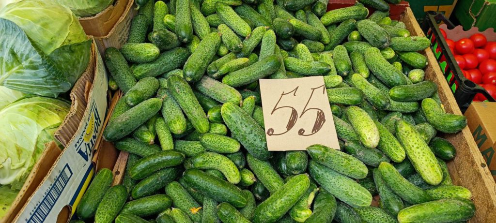 Огірки ми знайшли у Києві саме дешевше за 55, а ось у Краматорську навіть по 30 грн.