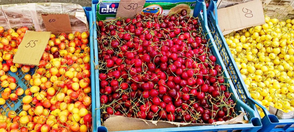 Черешня у Києві виявилась набагато дешевше ніж у Краматорську. Ціна у Києві від 50 грн, залежить від сорту.