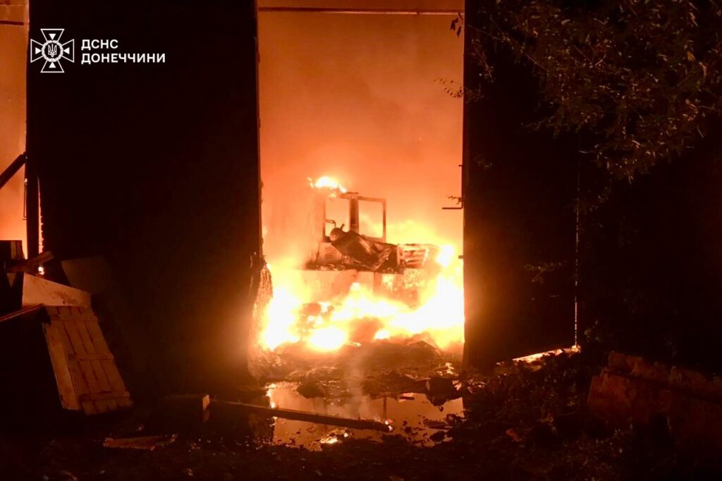 Також ворог завдав удару чотирма безпілотними летальними апаратами по промисловій зоні Слов’янська. Пошкоджено приватні будинки, підприємство та транспортні засоби. Виникла пожежа складської споруди, площа займання склала 1000 кв. м.