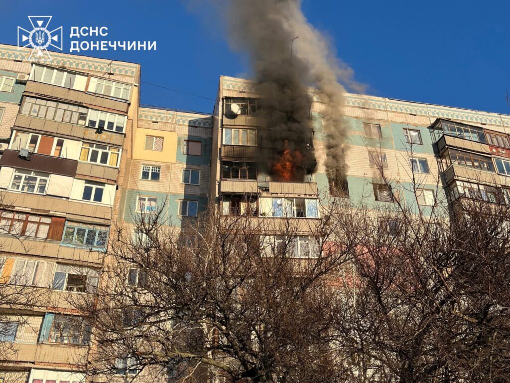 Учора ворог завдав удару безпілотними літальними апаратами по Краматорську. Один із дронів поцілив у дев’ятиповерхівку, спричинивши пожежу в квартирі. Вогнеборці ліквідували займання на площі 22 кв. м, не допустивши поширення вогню на інші помешкання.