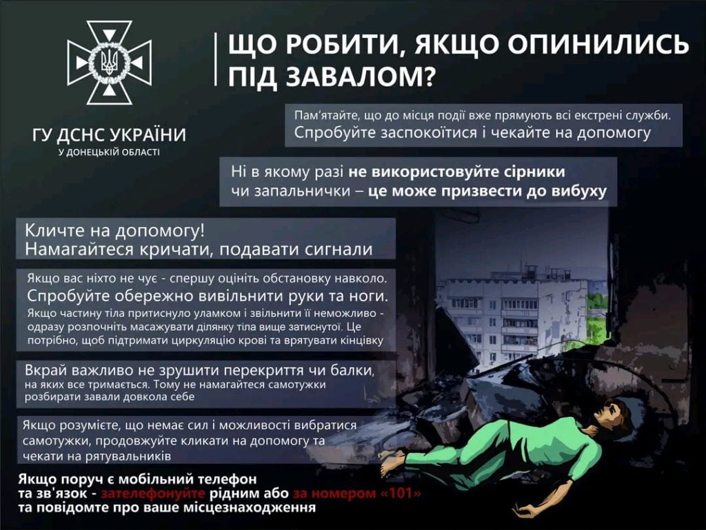 Російські окупаційні війська постійно обстрілюють населенні пункти Донецької області, існує велика ймовірність опинитися під завалами внаслідок обстрілу.