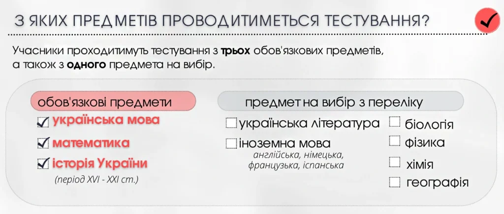 • сертифіката ЗНО/НМТ/ЄВІ;