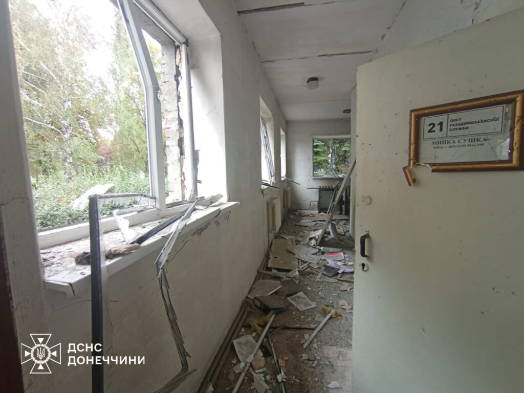 Вчора ввечері ворог завдав удару по місту Добропілля, внаслідок чого пошкоджено пожежно-рятувальну частину.