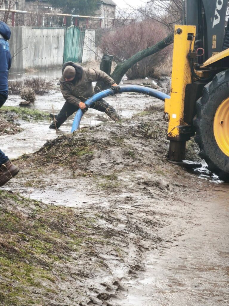Для ліквідації підтоплень задіяно спецтехніку та насосне обладнання. Основне завдання — якнайшвидше відвести воду, очистити проїжджу частину від багнюки та льоду й не допустити подальшого підтоплення.