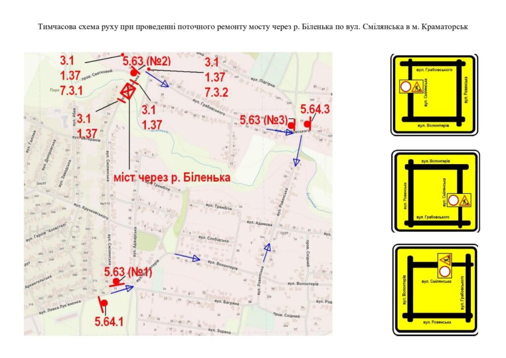 У селищі Біленькому у Краматорську з 7 вересня до 25 жовтня, через ремонтні роботи закривають міст.