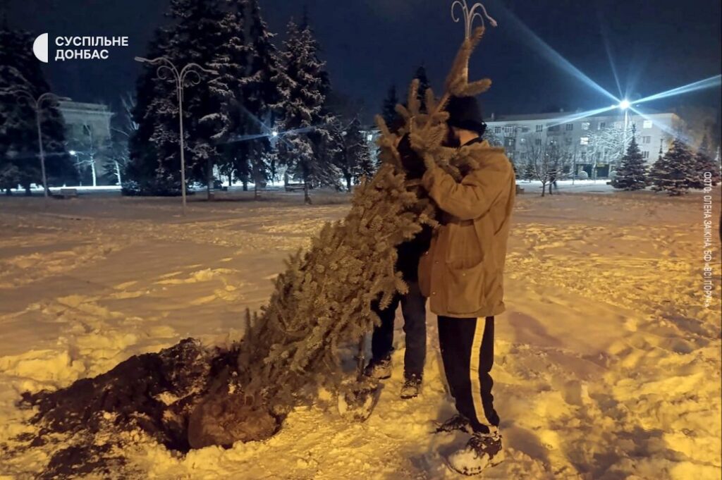 Цього року, як і в попередні роки повномасштабного вторгнення, у прифронтовму Краматорську влада не встановлювала головну новорічну ялинку у середмісті. Проте жителі міста наприкінці грудня самостійно почали встановлювати новорічні дерева на центральній площі.