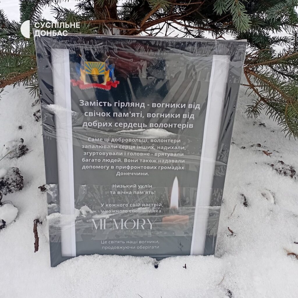 Напередодні Нового року у середмісті Краматорська ввечері 29 грудня висадили ялинку у пам’ять про загиблих волонтерів. Дерево, замість новорічних іграшок, прикрасили фотографіями загиблих на Донеччині волонтерів та стрічкою з написом “Евакуація”. Чиї імена та фото розмістили на ялинці та до якої проблеми хотіли привернути увагу — Суспільне Донбас поговорило з одним з ініціаторів вшанування памʼяті загиблих волонтерів Філіпом Івлєвим-Йорком.