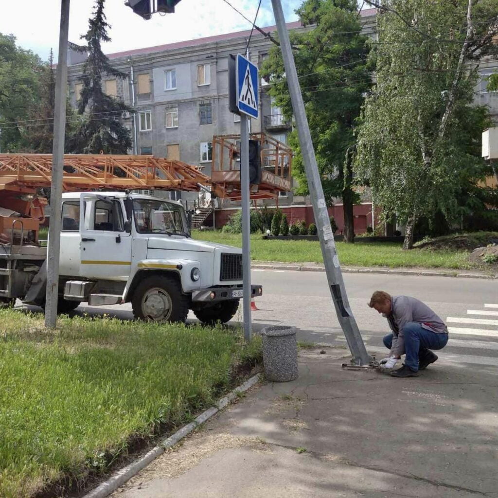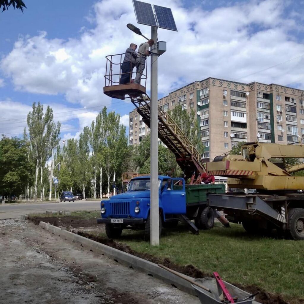 Виконано демонтаж пошкоджених опор, а біля центру позашкільної роботи у зв’язку з розширенням під’їзної дороги до закладу, буде виконуватись перенесення стовпів вуличного освітлення.
