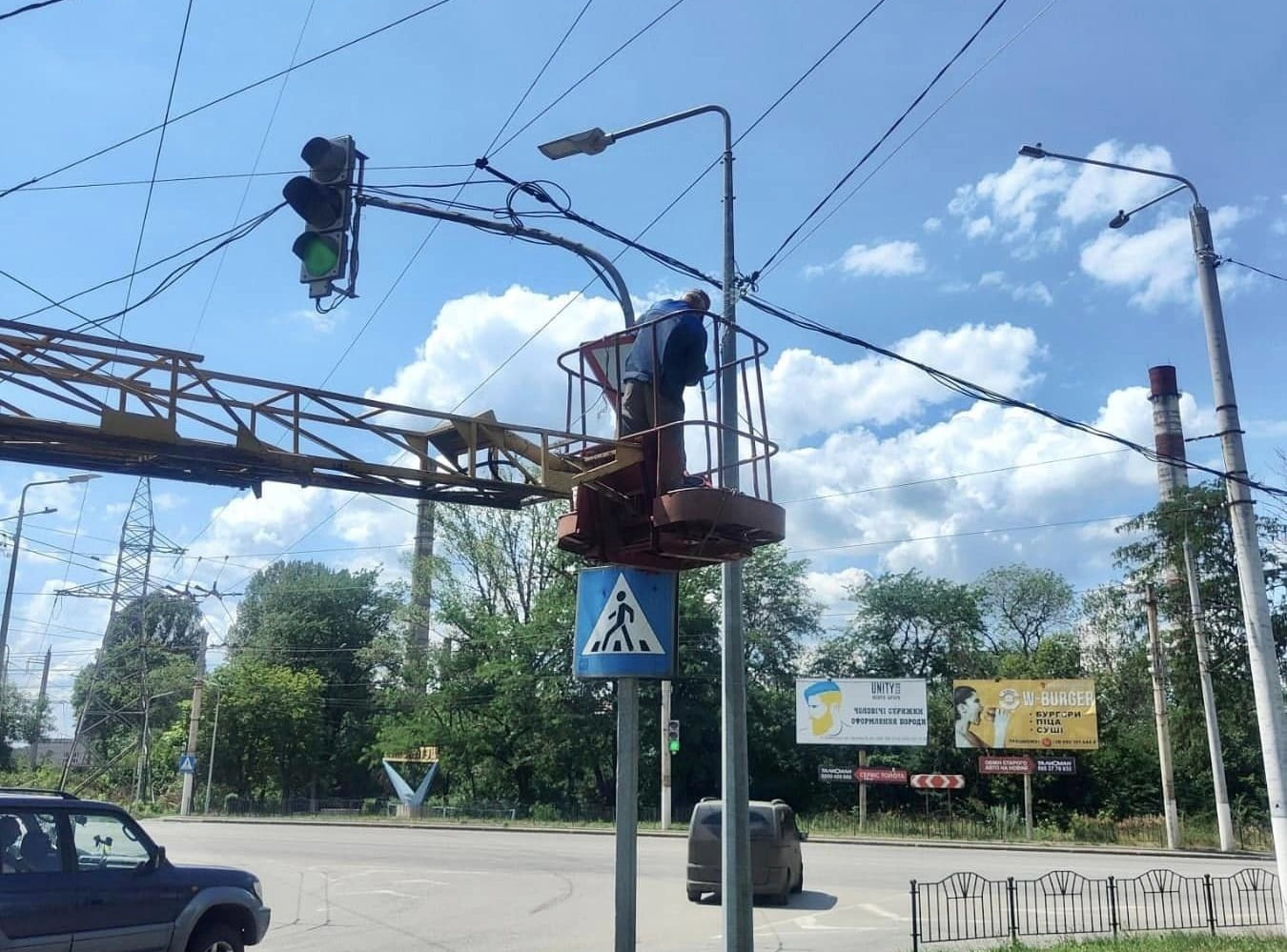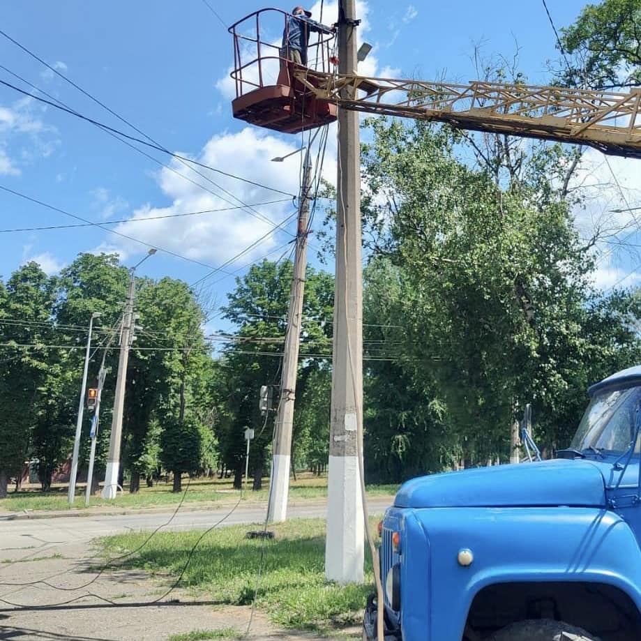 На світлофорному об’єкті на перетині вулиць Олекси Тихого Дружби виконано аварійний ремонт — демонтовано старий кабель, що вийшов з ладу, та змонтовано новий на тросовому підвісі.