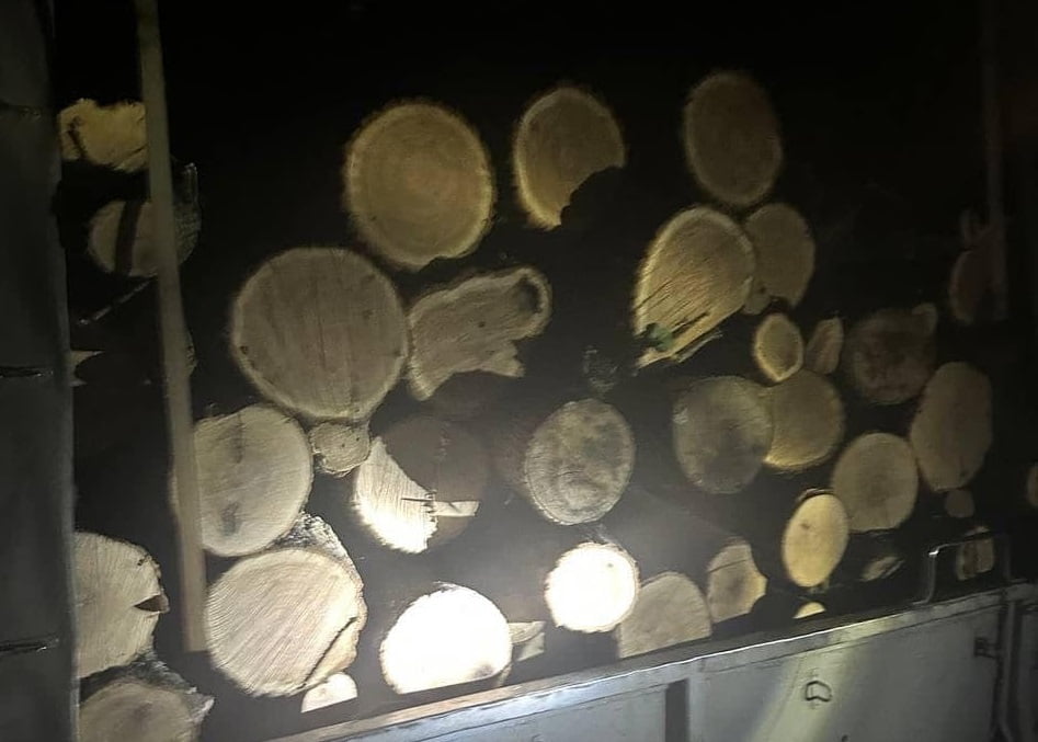 Транспортний засіб був завантажений спиляними стовбурами дерев.